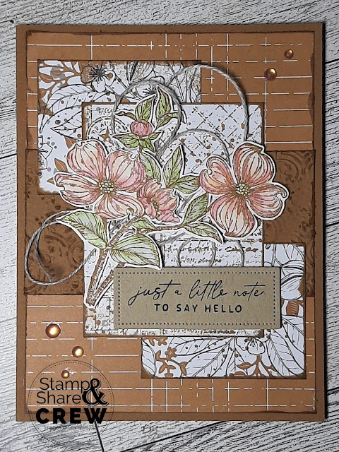 - Stamp the Dogwood image in Pecan Pie ink onto the 4” x 4” piece of Basic White card stock.
